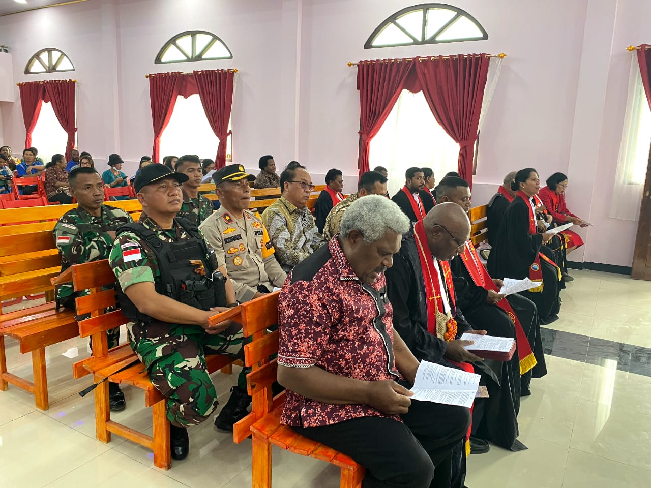 SangrajawaliNews.Com, Lanny Jaya,- Satgas Pamrahwan Yonif 721/Makkasau bersinergi dengan Forkopimda. Sinergitas itu terlihat ketika Satgas bersama Forkopimda meresmikan Gedung Gejera Jemaat GKI Betel Tiom Klasis Baliem Yalimo pada Senin (05/02/2024).