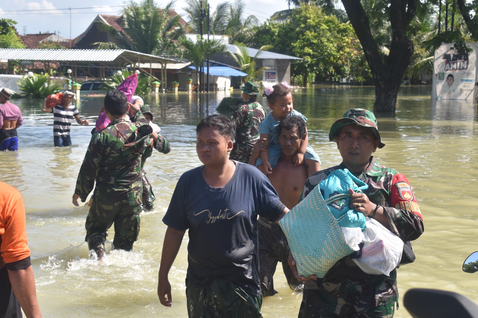 Sangrajawalinews.Com, (Puspen TNI) – Dandim 0716/Demak Letkol Kav Maryoto bersama 100 personelnya melaksanakan evakuasi dan SAR bagi warga yang terdampak banjir akibat jebolnya beberapa tanggul sungai di wilayah Kecamatan Gajah dan Karanganyar, Kabupaten Demak, Sabtu (10/2/2024).