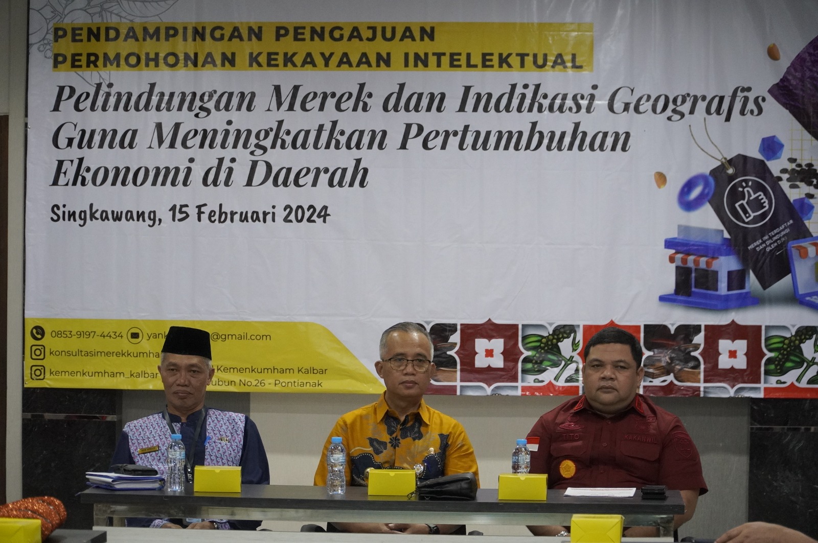 Sangrajawalinews.com | Singkawang Kalbar-Kantor Wilayah Kementerian Hukum dan HAM Kalimantan Barat berikan Pendampingan Pengajuan Permohonan Kekayaan Intelektual bertempat di Aula Bumi Betuah Kantor Walikota Singkawang dihadiri Kepala Kantor Wilayah Kementerian Hukum dan HAM Kalimantan Barat Muhammad Tito Andrianto, Pj. Wali Kota Singkawang Sumastro, Heri Apriadi Kepala Dinas Pariwisata, Pemuda dan Olahraga Kota Singkawang, Kepala Bidang Pelayanan Hukum Muhayan, Kepala Sub Bagian Humas Reformasi Birokasi dan Teknologi Informasi Zulzaeni Mansyur dan Kepala Unit Pelaksana Teknis se-Kota Singkawang. Kamis (15/02)
