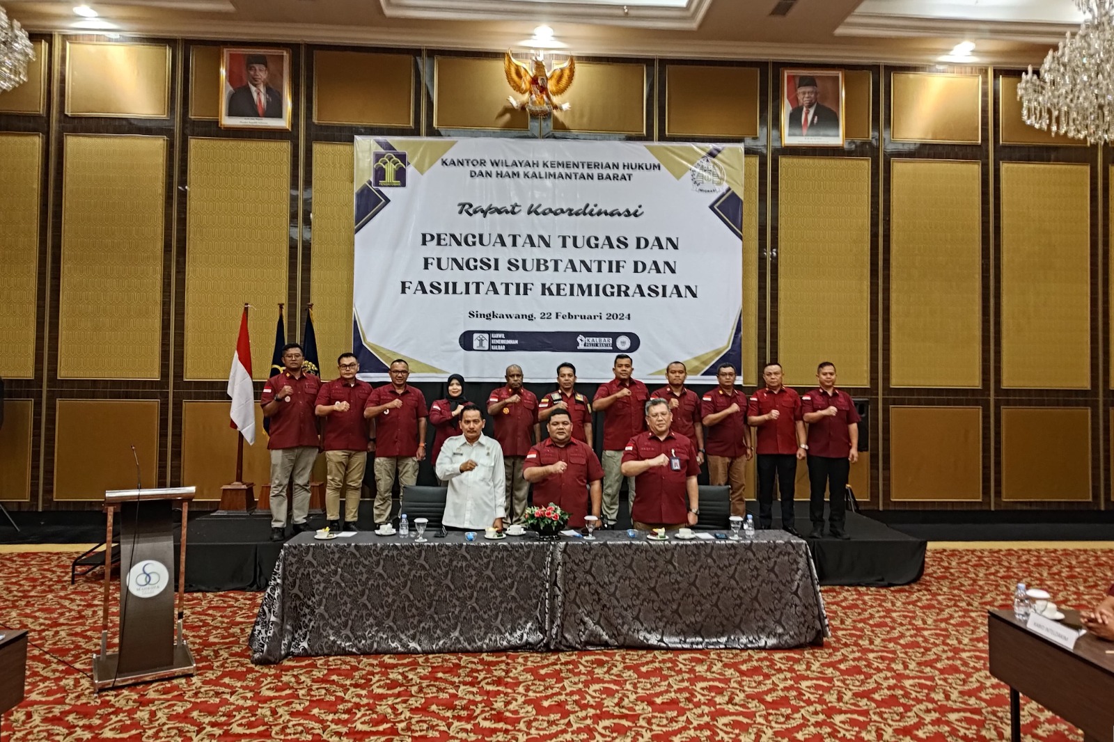 Sangrajawalinews.com |Singkawang Kalbar – Memperkuat fungsi pembinaan, pengendalian, dan pengawasan serta pelaksanaan tugas teknis keimigrasian, Divisi Keimigrasian Kantor Wilayah Kementerian Hukum dan Hak Asasi Manusia (Kemenkumham) Kalimantan Barat menggelar Rapat Koordinasi (Rakor) Penguatan Tugas dan Fungsi Substantif dan Fasilitatif Keimigrasian. Acara ini diikuti oleh 35 peserta, terdiri dari perwakilan dari Kanwil, Kasatker Kantor Imigrasi, dan Rudenim.Kamis (22/2)