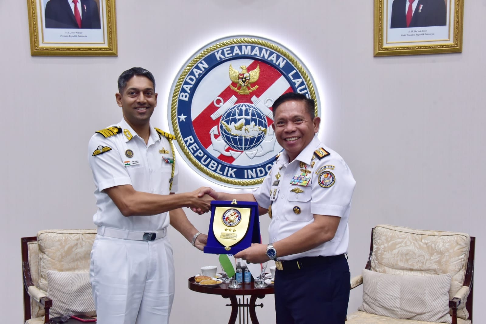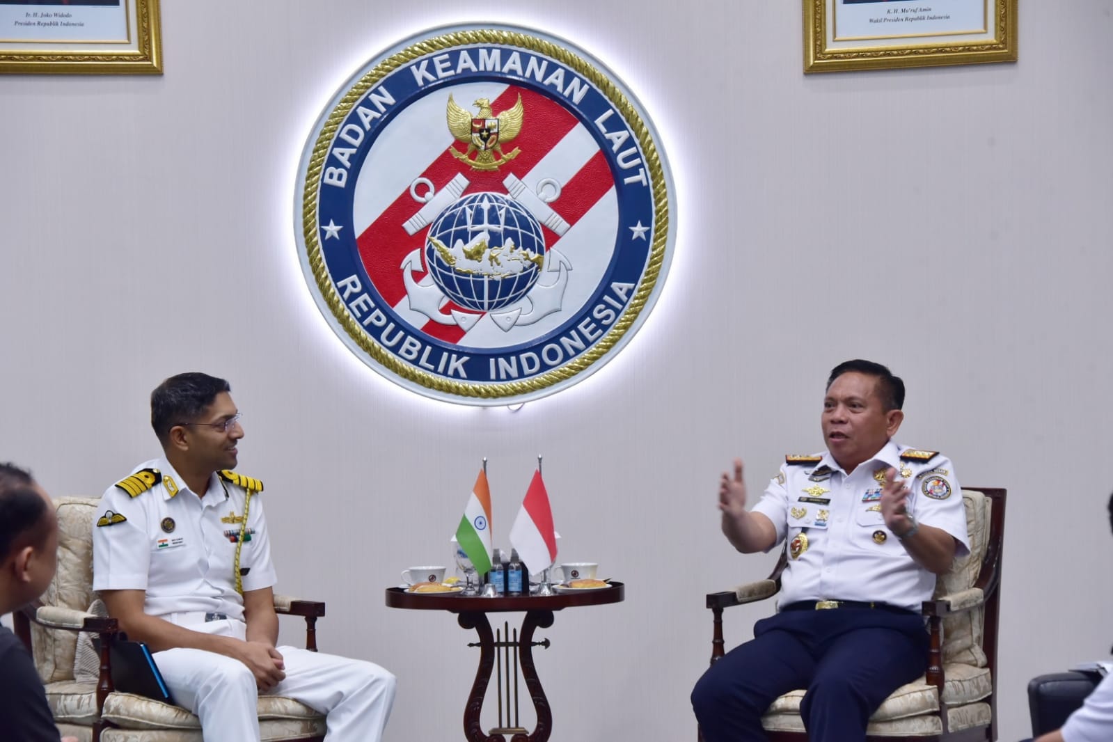 SangrajawaliNews.Com, (Bakamla RI/Indonesian Coast Guard) – Kepala Bakamla RI Laksdya TNI Dr. Irvansyah, S.H., M.Tr.Opsla., menerima kunjungan kehormatan dari Atase Pertahanan (Athan) India Captain Shiv Kumar. Pertemuan berlangsung di Aula Ary Hasibuan Mabes Bakamla RI, Jakarta Pusat, Selasa (27/02/2024).