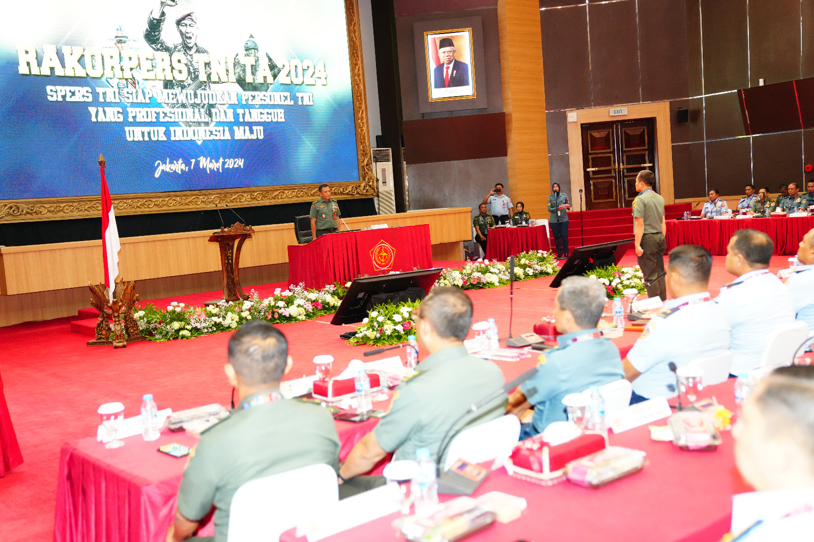Demikian amanat Kepala Staf Umum (Kasum) TNI Letjen TNI Bambang Ismawan, S.E., M.M. yang dibacakan Koorsahli Panglima TNI Mayjen TNI Dadang Arif Abdurahman., S.E., M.Si., saat membuka Rapat Koordinasi Personel TNI Tahun 2024 dengan tema “Spers TNI Siap Mewujudkan Personel TNI Yang Profesional Dan Tangguh Untuk Indonesia Maju”, yang diikuti peserta tatap muka/offline 115 orang dan daring/online 44 orang, bertempat di Aula Gatot Soebroto Mabes TNI, Cilangkap, Jakarta Timur, Kamis (7/3/2024).