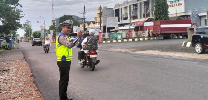 Meski berpuasa, Personel Sat Lantas Polres Takalar tetap menjalankan tugasnya dengan semangat, Personel memastikan bahwa arus lalu lintas lancar dan aman, tanpa gangguan akibat kemacetan.