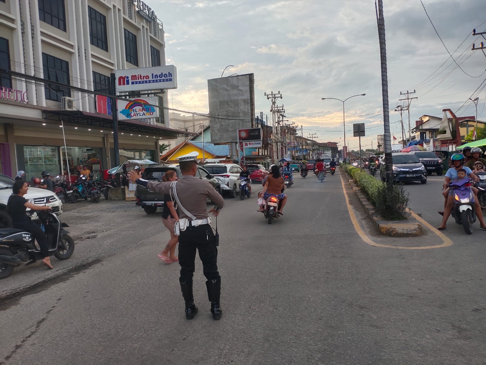 Satlantas Polres Melawi Melaksanakan Pengamanan Arus Lalu Lintas Di Sejumlah Lokasi Pasar Juadah Dan Kantin Ramadhan di Nanga Pinoh