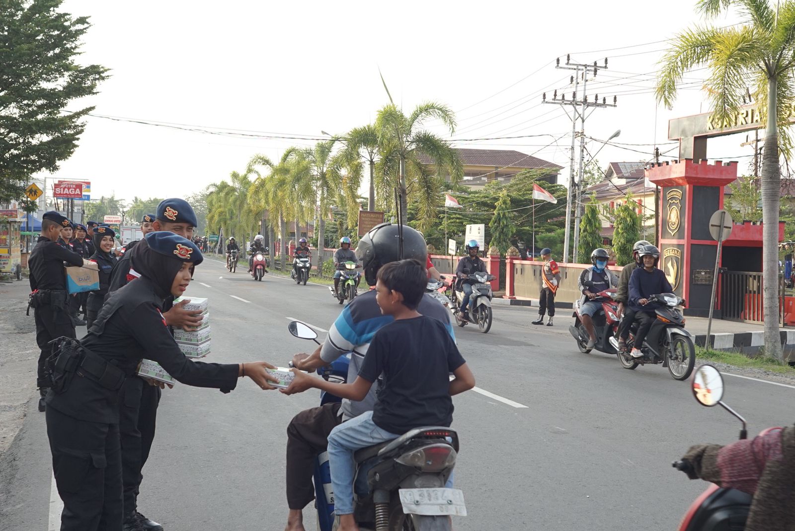 Kegiatan bagi-bagi takjil ini juga merupakan upaya kami untuk membantu masyarakat yang pulang bekerja atau bahkan yang masih bekerja mencari hidangan berbuka serta kegiatan ini merupakan bentuk nyata hadirnya Polri ditengah-tengah masyarakat. Kami juga mengucapkan terimakasih kepada masyarakat yang telah bersedia menerima takjil pemberian kami ini “ ucap Ipda Bujang Waluyo.