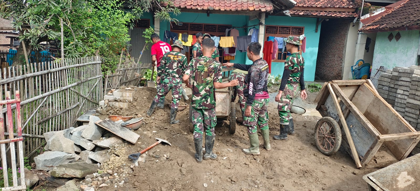 sangrajawalinews.com – Bekasi Di Hari Ke 27 Meskipun dalam kondisi menjalankan Puasa Ramadhan 1445 Hijriah, Personel Satgas TMMD ke 119 tetap bersemangat untuk melanjutkan pembangunan pengerasan jalan Lingkungan Lokasi Titik 6 Di Kampung Lemahabang RT 03/06 Desa Karang Mukti Kecamatan Karang Bahagia, Minggu 17/3/2024.