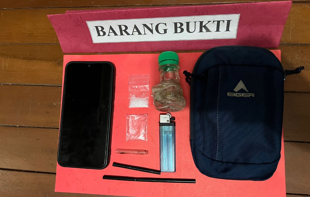 ”Pada saat penangkapan, dilakukan pemeriksaan di hadapan saksi masyrakat umum dan ditemukan beberapa barang bukti yang memperkuat dugaan keterlibatan tersangka dalam peredaran narkotika. Barang bukti yang berhasil diamankan antara lain satu paket plastik klip transparan yang diduga berisi narkotika jenis sabu, tas pinggang merk Eiger warna biru dongker, dan satu unit HP Android merk VIVO Y12 warna merah maroon” Jelasnya.