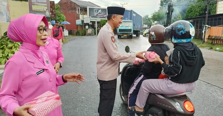 *Bhayangkari ranting Somba Opu Bagi-Bagi Takjil Gratis ke Pengendara di Jalan.*