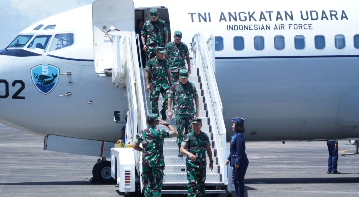 Kedatangan Kasum TNI di Bandara Emmy Saelan Lanud Sultan Hasanuddin, dalam rangka melaksanakan transit sebelum melanjutkan kunjungan kerja (Kunker) di Provinsi Papua dalam sejumlah agenda.