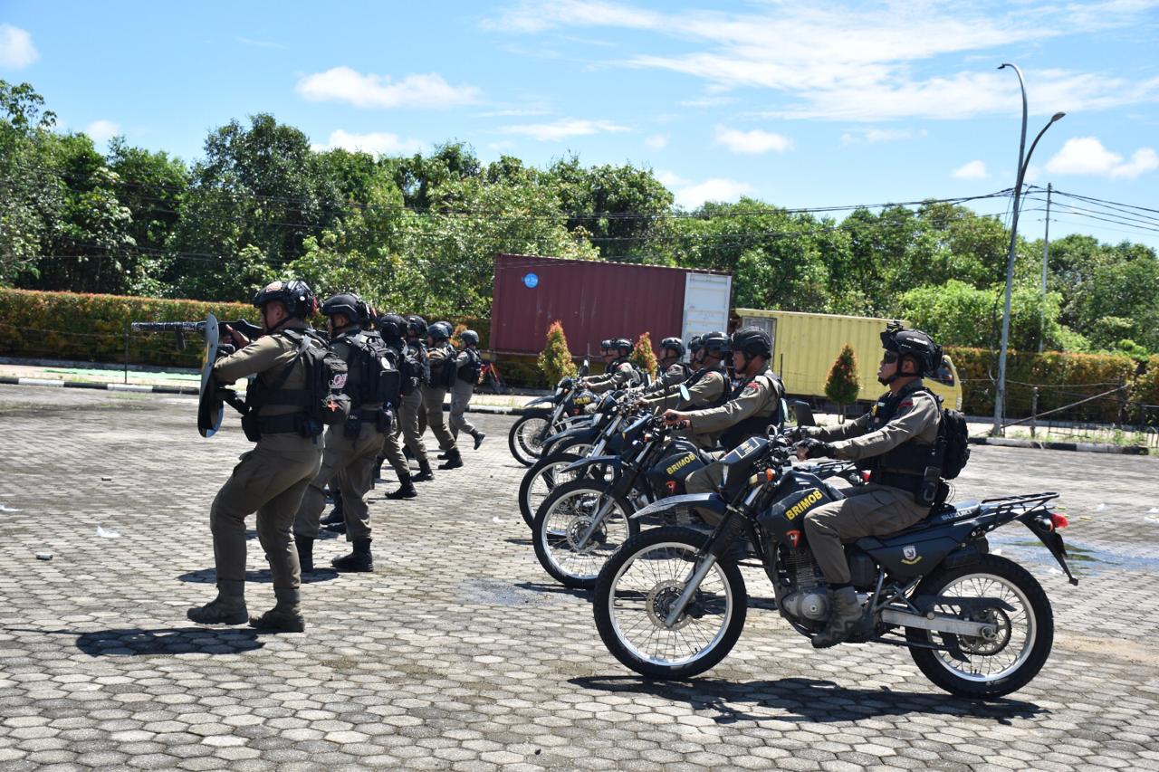 Dansatbrimob Polda Kalbar Kbp M. Guntur, S.I.K., M.H. memimpin langsung pelaksanaan upacara penutupan latihan peningkatan kemampuan PHH dan Anti Anarkis T.A. 2024 yang dilaksanakan di Mako Satbrimob Polda Kalbar.