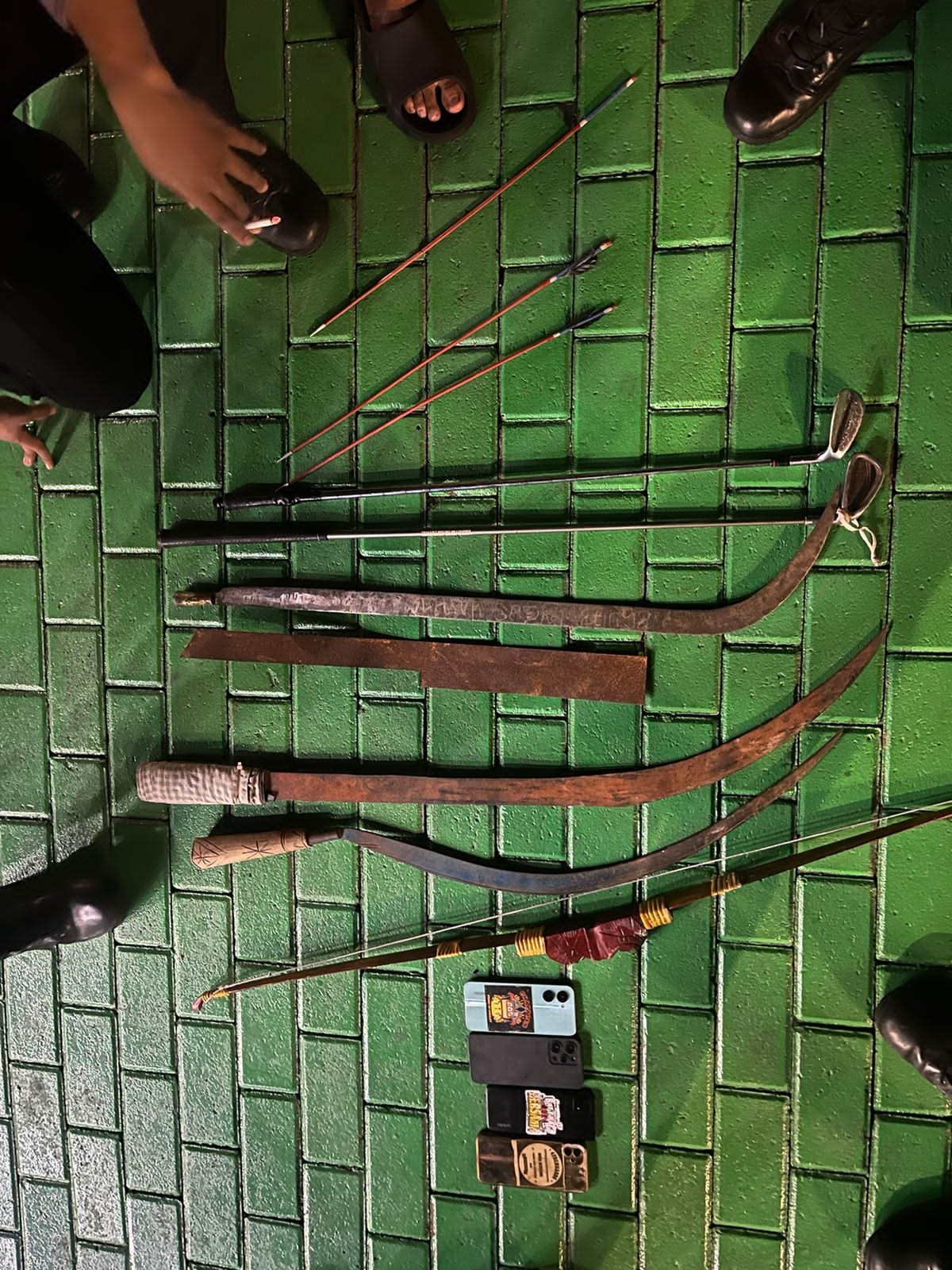 Petugas tidak hanya berhasil mengamankan para remaja tersebut, namun juga beberapa barang bukti berupa 4 buah senjata tajam jenis celurit ukuran besar, 2 buah stick golf, 3 buah anak panah dan 1 buah cocor bebek.