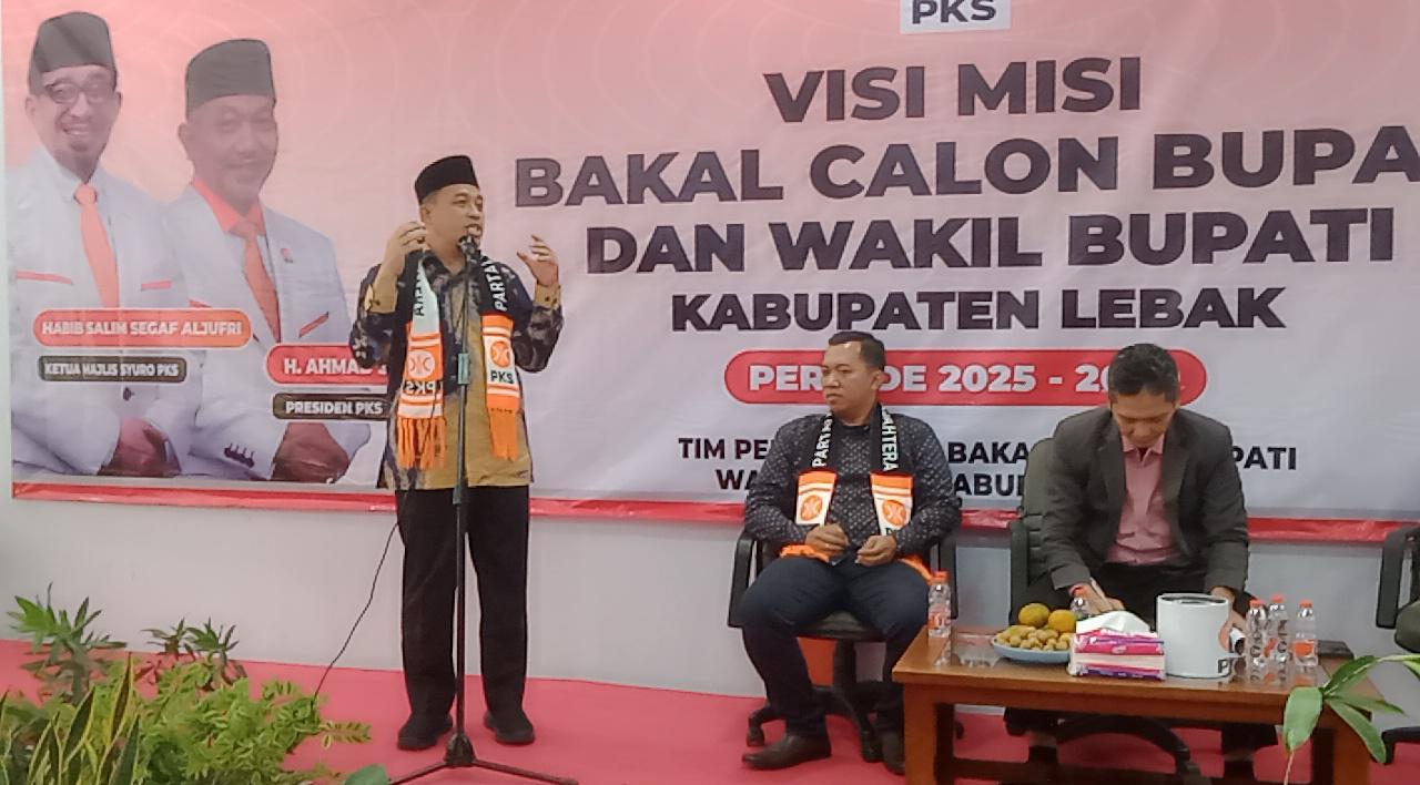 sangrajawalinews.com – Lebak – Bakal Calon Bupati Lebak Sanuji Pentamarta memaparkan visi dan misi pada seluruh kader Partai Keadilan Sejahtera di Kantor DPD PKS Lebak, yang berada di Jalan Maulana Hasanudin, kampung Cempa Desa Cilangkap, Kecamatan Kalanganyar, Kabupaten Lebak,Banten, pada hari Sabtu, (8/6/2024)