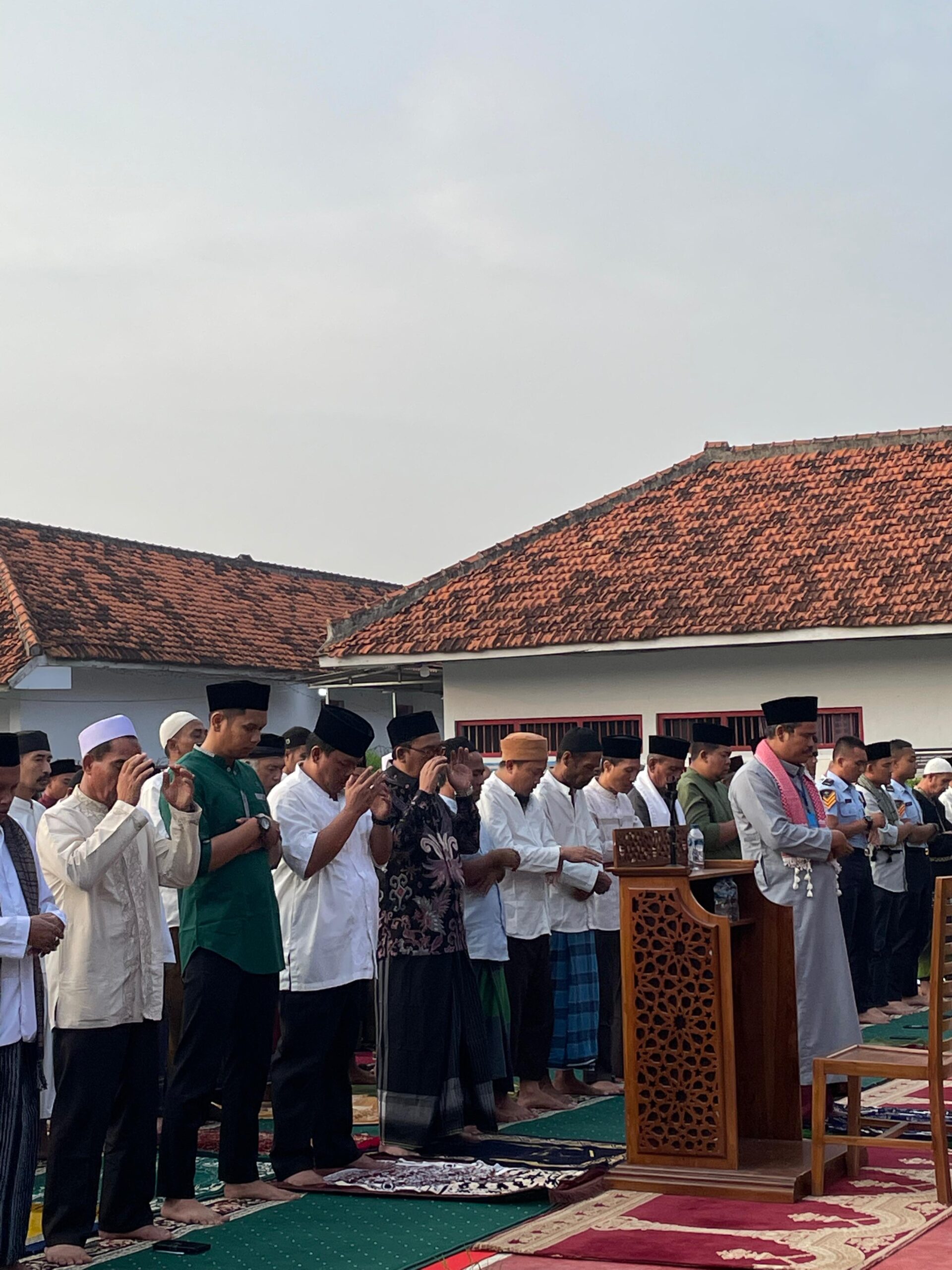 SangrajawaliNews.Com | Serang – Lembaga Pemasyarakatan (Lapas) Kelas IIA Serang menggelar pelaksanaan Solat Hari Raya Idul Adha 1445 H di Lapangan Area Blok Hunian Warga Binaan. Acara dimulai pada pukul 06.00 WIB dan berlangsung dengan lancar serta tertib. Senin, (17/6/24).