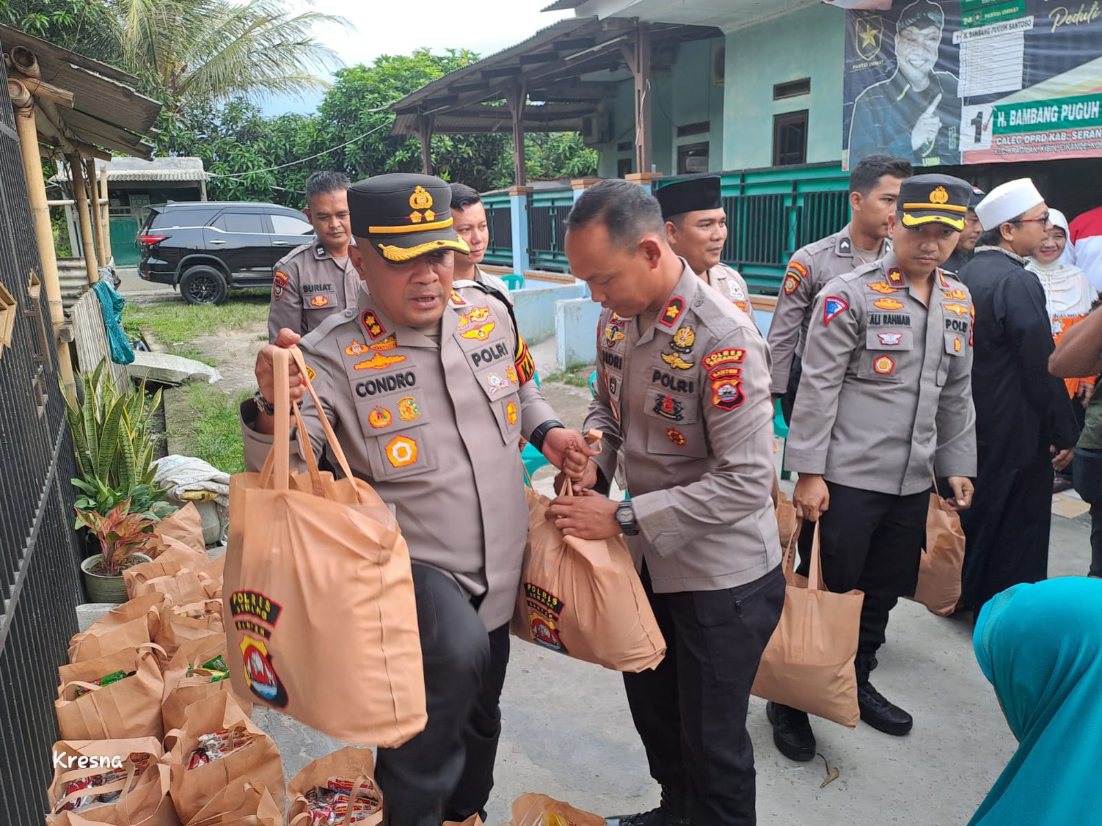 Sebelum mengakhiri acara silaturahmi, Kapolres AKBP Condro Sasongko selanjutnya memberikan bingkisan sembako serta uang sebagai bentuk tali asih.