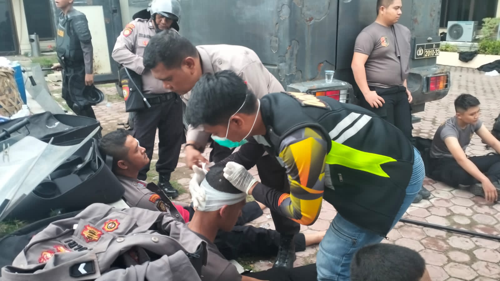Sangrajawalinews.com – Banda Aceh — Empat personel polri terluka saat menjalankan tugasnya mengamankan aksi unjuk rasa yang dilakukan mahasiswa di Lhokseumawe terkait penolakan revisi Undang-undang Pilkada, Jumat, 23 Agustus 2024.