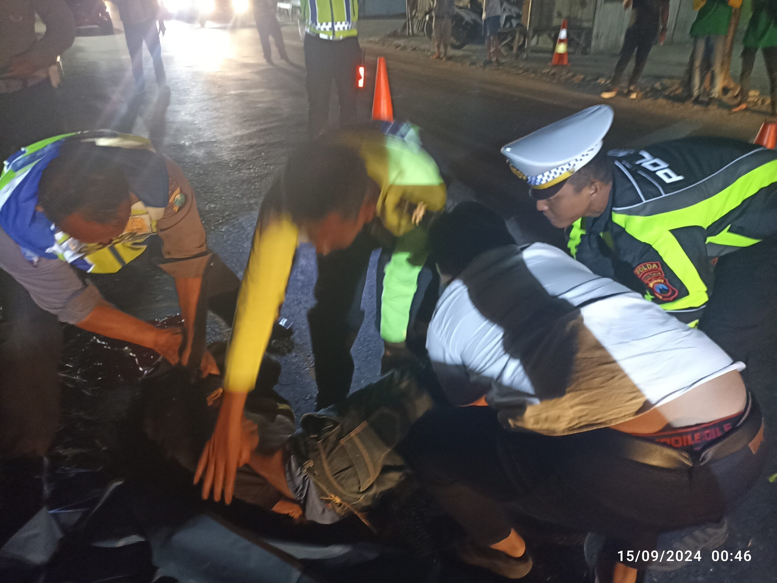 Sangrajawalinews.com | Kediri Kota – Kasatlantas Polres Kediri Kota AKP Afandy Dwi Takdir datangi TKP ( tempat kejadian perkara) Laka Tunggal hingga mengakibatkan korban meninggal dunia di lokasi kejadian, pada Minggu 15 September 2024 dini hari.