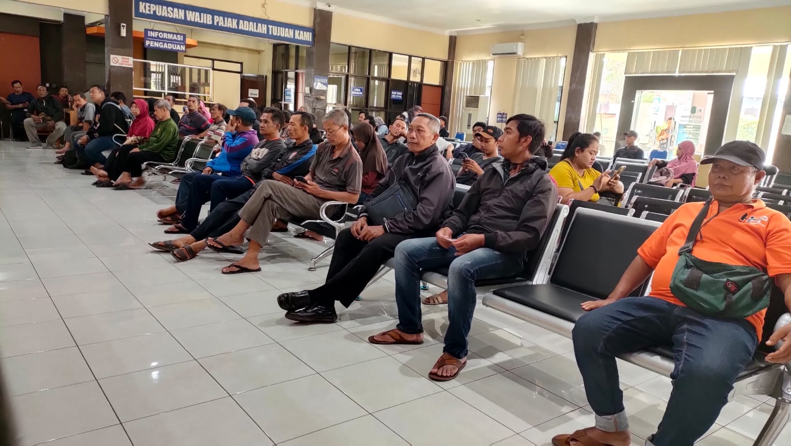 Tidak puas hanya meninjau, Kasatlantas berbincang-bincang dengan wajib pajak yang tengah antre membayarkan kewajibannya. Mencari tahu tentang kepuasan terhadap pelayanan yang diberikan.
