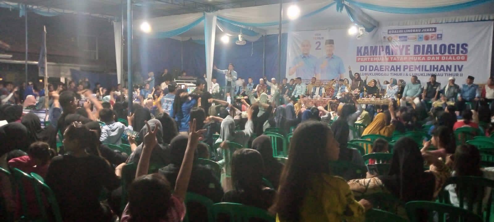 Yoppy Karim dan Rustam Effendi secara spontan meminta agar semua peserta kampanye berslebrasi goyang dua jari dengan iringan musik beat Botak Peci.