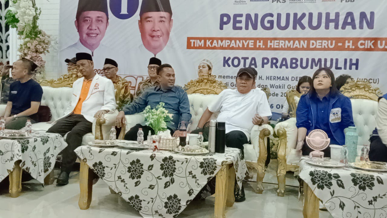 Bukan hanya sekedar menang saja,kita juga menargetkan kemenangan yg besar, sesuai pesan dari Cagub kita bapak H. Herman Deru pada saat orasinya yg disampaikan saat pelantikan TKK tadi, Sekali lagi kami mengajak mari kata bersama sama bahu membahu dari segala lini masyarakat dari atas sampai bawah menuju kemenangan bersama untuk gubernur paslon HDCU nomor urut 1 dan kota prabumulih paslon Ngesti Amin BerGEMA no urut 3,”Tutupnya. (Feri)