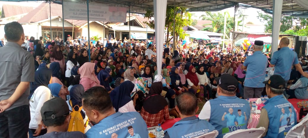 Sangrajawalinews – LUBUK LINGGAU – Ratusan warga dari berbagai kalangan tak terbendung lagi saat menghadiri acara Kampanye dialogis Pasangan Calon (Paslon) Walikota dan Wakil Walikota Lubuk Linggau Nomor Urut 02 yakni H. Rachmat Hidayat – H. Rustam Effendi (Yoppy-Rustam) di Kelurahan Bandung Ujung Kecamatan Lubuk Linggau Barat l, Selasa, (22/10/2024).