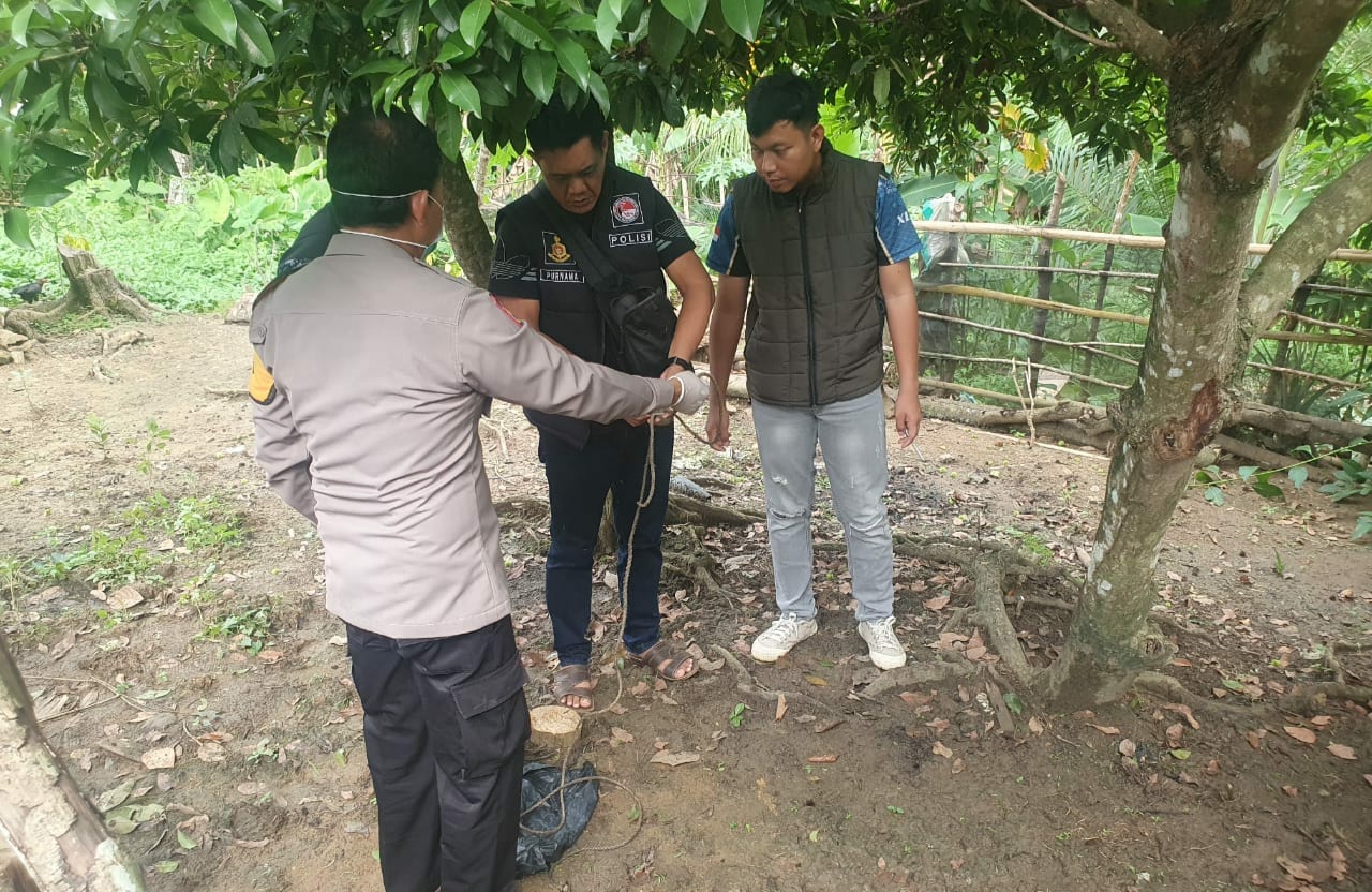 Setiba dilokasi, anggota Polsek Jayaloka Polres Mura, ternyata benar, korban meninggal bunuh diri tergantung dipohon sawo dan anggota langsung sigap melakukan pengecekan luar sekaligus olah TKP serta pemeriksaan saksi-saksi.