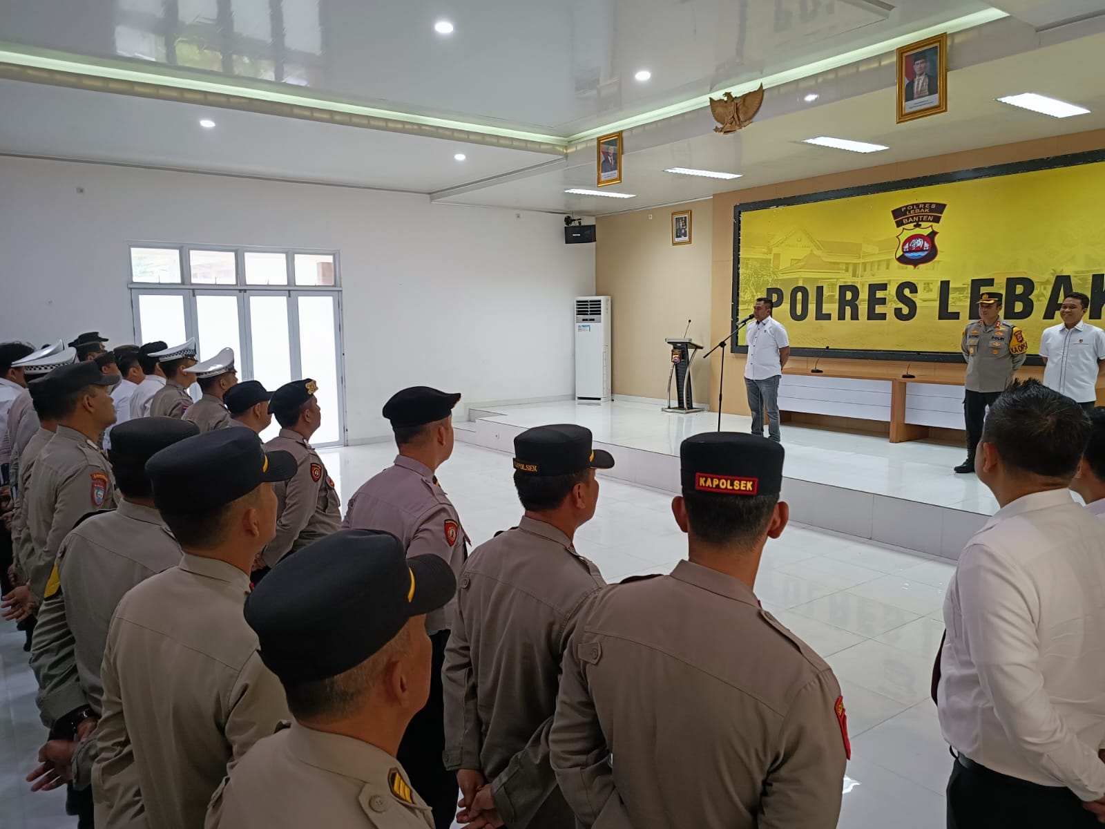 Sangrajawalinews.com – Lebak – Guna memastikan setiap tahapan Pemilukada Aman lancar dan terkendali Dirreskrimsus Polda Banten KBP. YUDHIS WIBISANA., SIK., MH didampingi Wadir Krimsus Polda Banten AKBP. WIWIN SETIAWAN, SIK., MH Kapolres Lebak AKBP. Suyono.,SIK, PJU Polda Banten, PJU Polres Lebak, Jajaran Kapolsek Polres Lebak memimpin langsung Apel pagi di Aula Sanika Satyawada Polres Lebak jam 07.30 Wib sampai dengan selesai. Rabu (4/12/2024).
