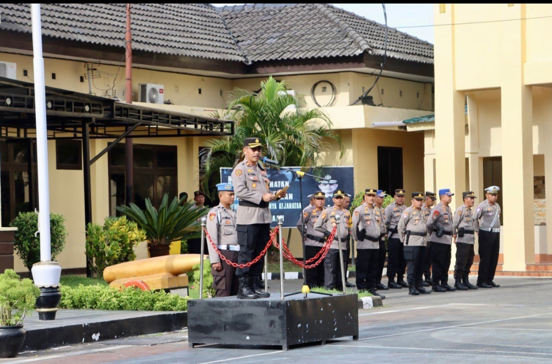 Wakapolres Takalar saat membacakan amanat Kapolres Takalar AKBP Gotam Hidayat, S.I.K., M.Si mengucapkan selamat kepada adik-adik para siswa Latja yang telah melaksanakan Program Latihan Kerja di Polres Takalar.