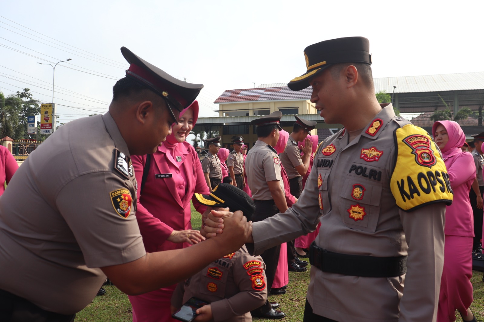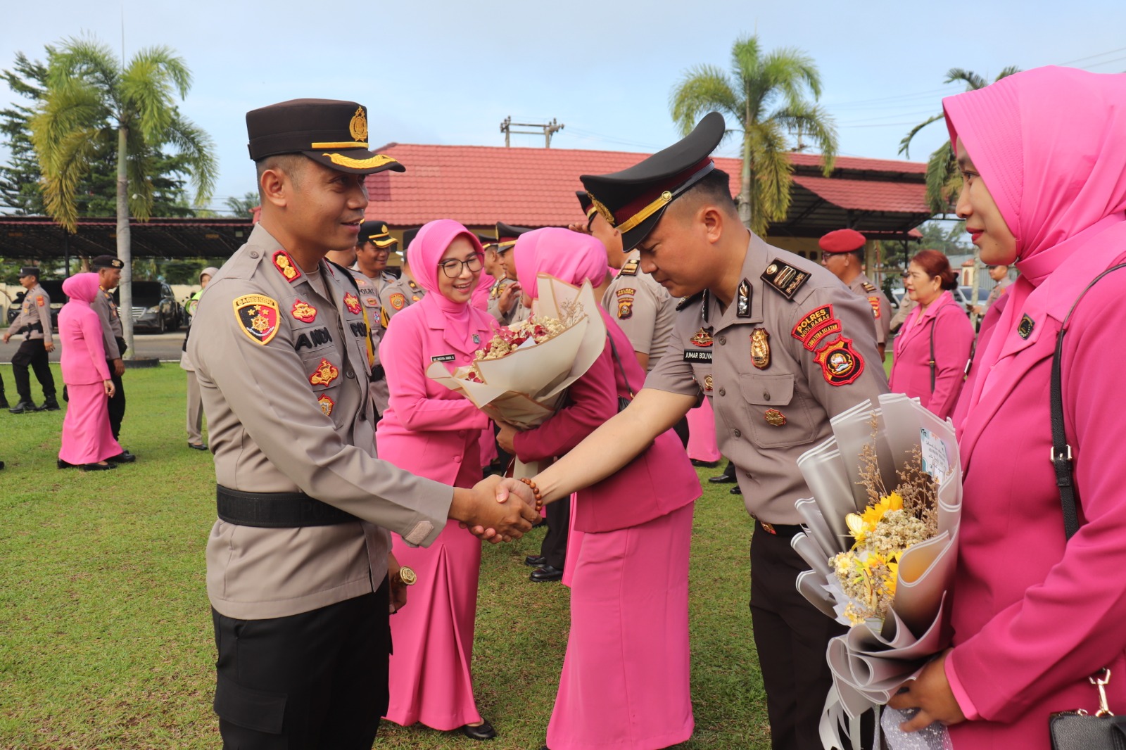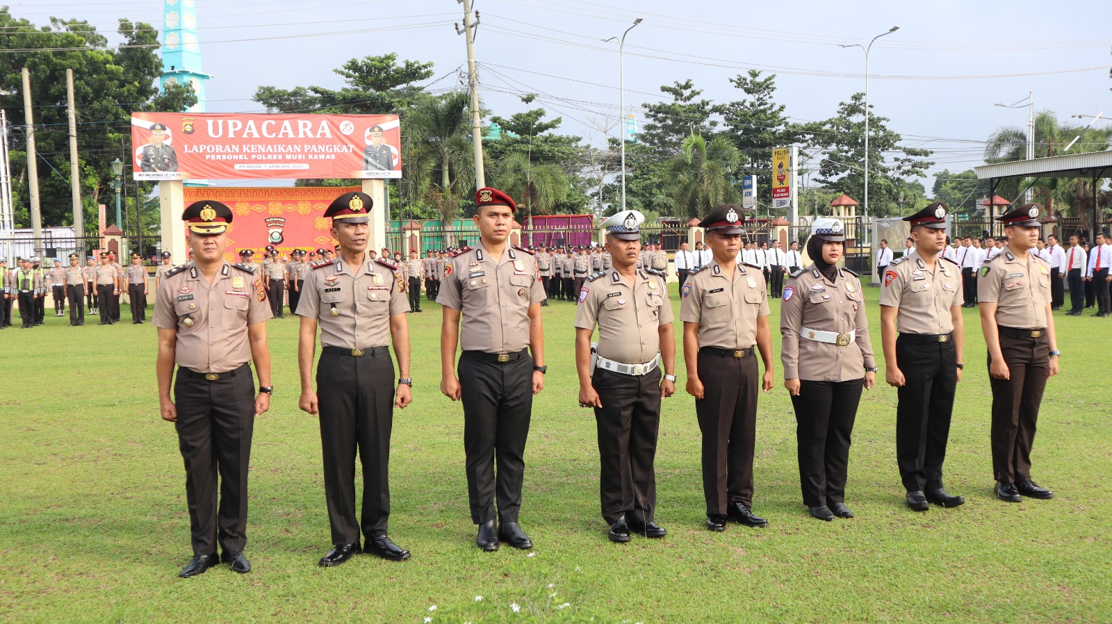 “Bagi personel yang naik pangkat atas nama pimpinan dari Kepolisian Negara Republik, Jendral Pol, Listyo Sigit Prabowo MSI, dan saya selaku pribadi mengucapkan selamat atas kenaikan pangkatnya yang setingkat lebih tinggi dari pangkat sebelumnya,” kata Kapolres