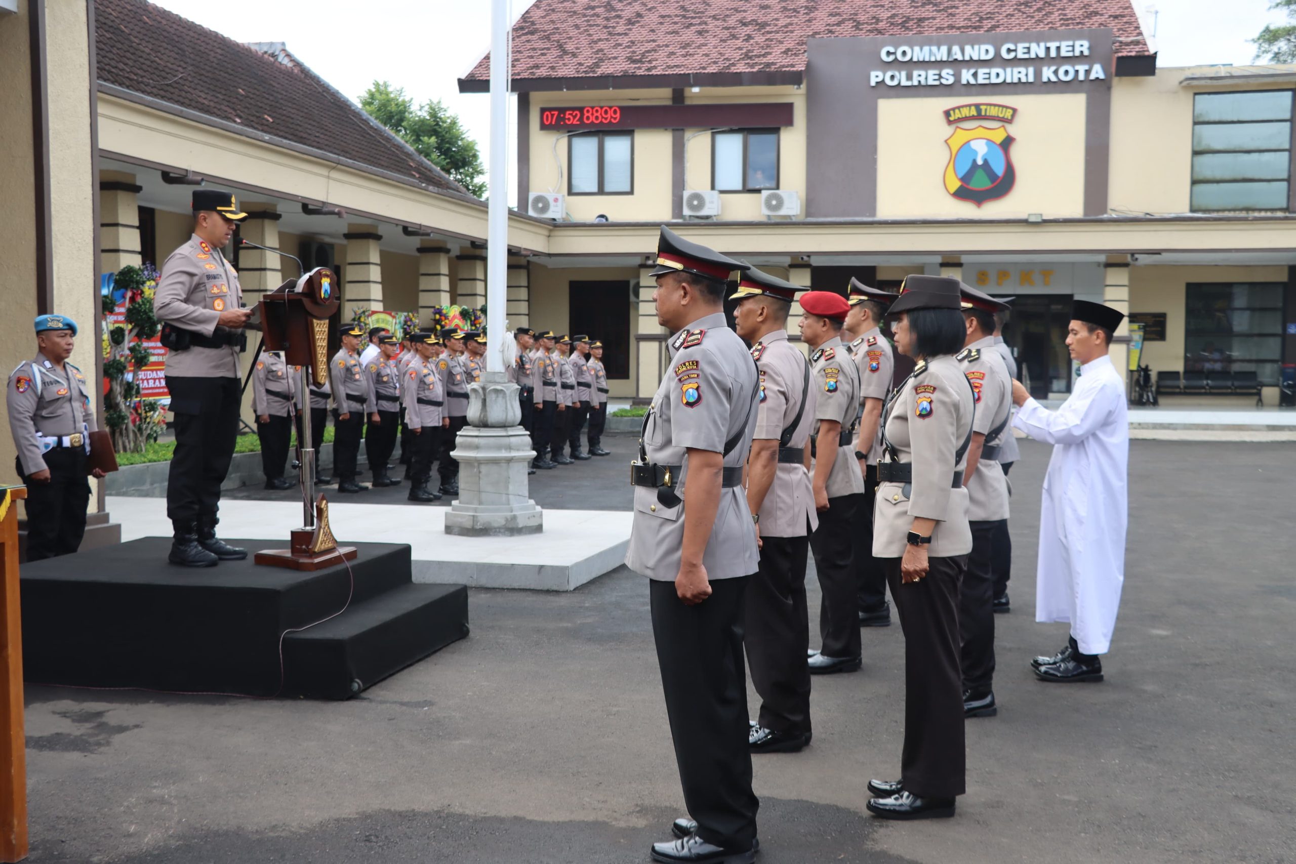 Kapolres mengucapkan selamat kepada pejabat baru atas kepercayaan pimpinan Polri untuk bergabung di Polres Kediri Kota selamat bekerja dan dan besar harapan saya agar pejabat yang baru dilantik dapat meneruskan serta meningkatkan apa yang telah diraih oleh pejabat sebelumnya, segera lakukan penyesuaian diri karena tantangan tugas sudah menanti di depan mata