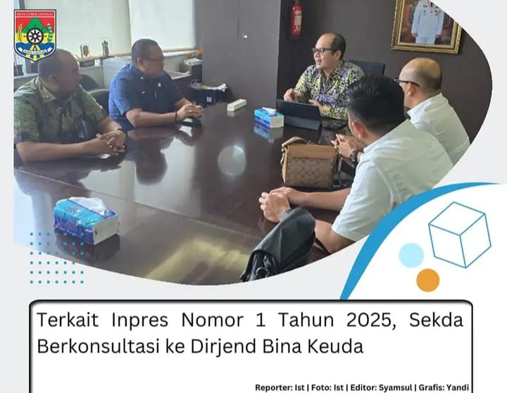 Kepala Bappeda Litbang, H Erma Endi Kesuma dan Kepala BPPRD, H Hendra Gunawan melakukan konsultasi dengan Dr Fernando H Siagian, S.STP, MSi selaku Kasubdit Perencanaan Anggaran Daerah Wilayah I Direktorat Perencanaan Anggaran Daerah, Direktorat Jenderal Bina Keuangan Daerah Kementerian Dalam Negeri terkait Instruksi Presiden (Inpres) Nomor I Tahun 2025 di Kantor Dirjend Bina Keuangan Daerah, Kamis (30/1/2025).