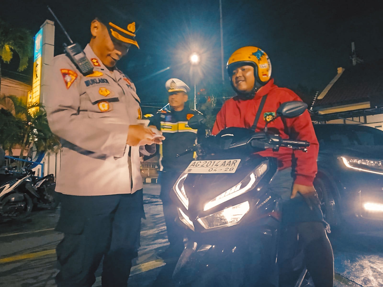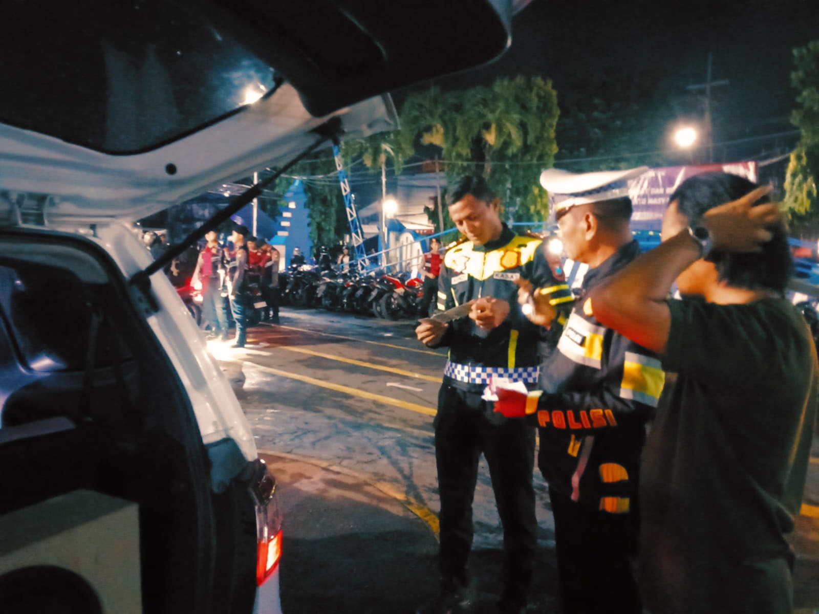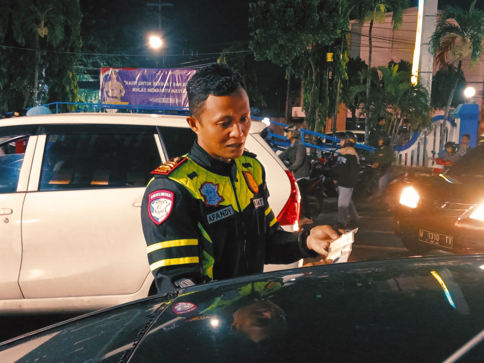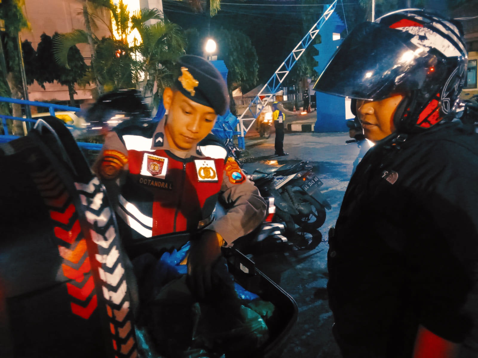 Dalam razia itu petugas menghentikan/ menyetop beberapa kendaraan roda dua dan empat, dengan humanis/ ramah serta sesuai SoP petugas menanyakan surat-surat kendaraan pengendara.