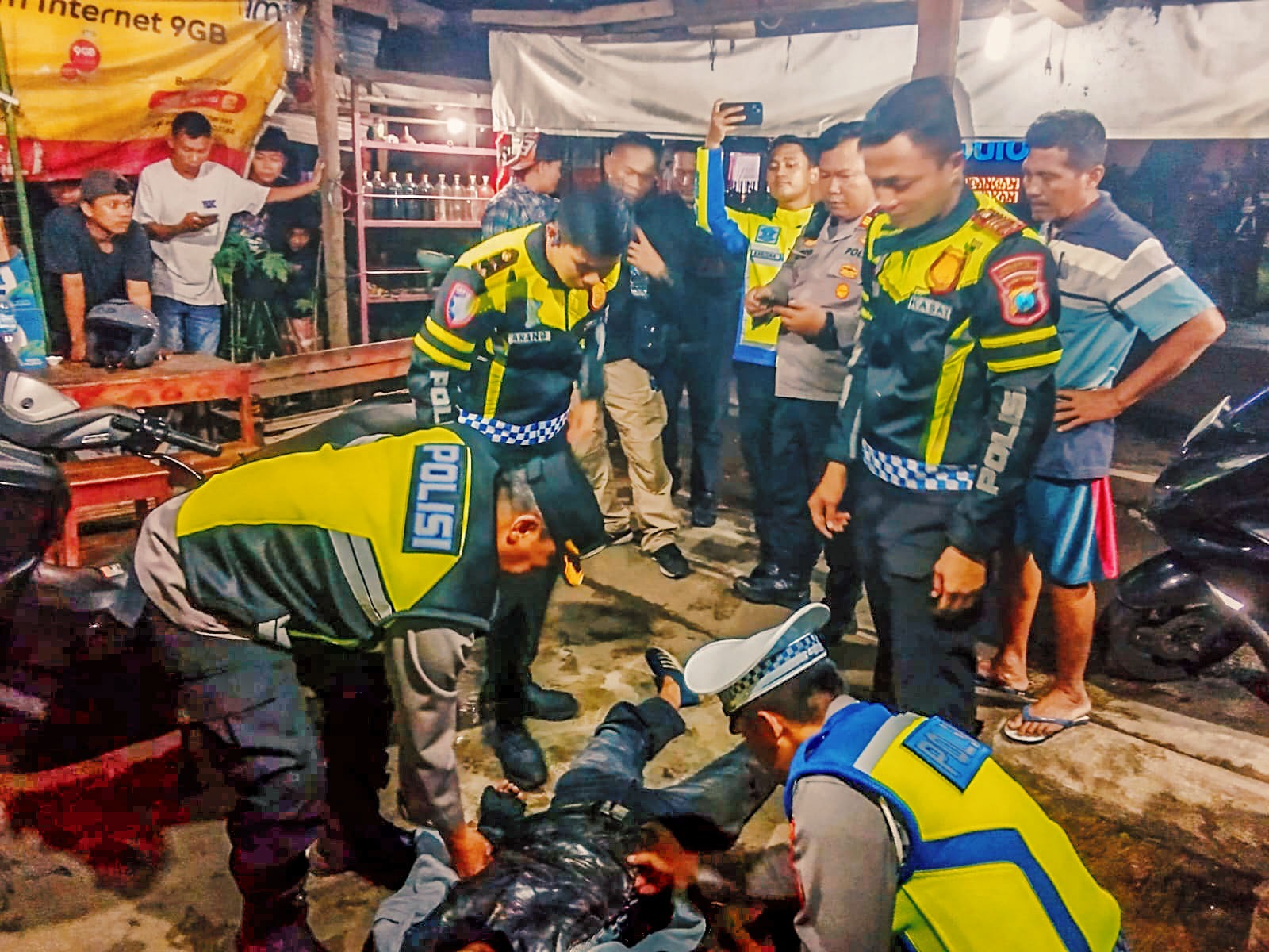 “ Dan ternyata saat kita datangi asal suara itu, kita menemukan korban laka lantas tunggal tergeletak di tengah jalan beraspal,di depan Gudang Bulog Banyakan TKP nya, ” ujar AKBP Mukhlason.