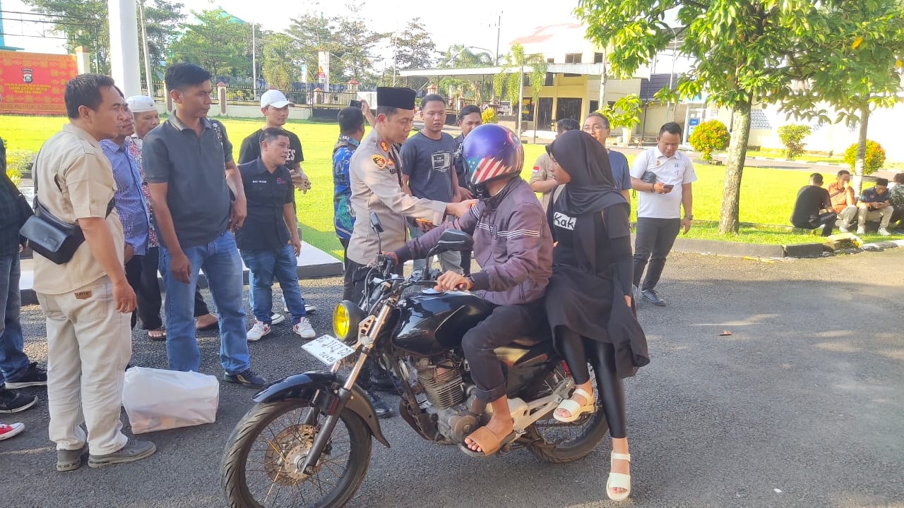 Kapolres juga mengingatkan bagi pengendara kendaraan bermotor, untuk senang tiasa menaati aturan berlalu lintas.