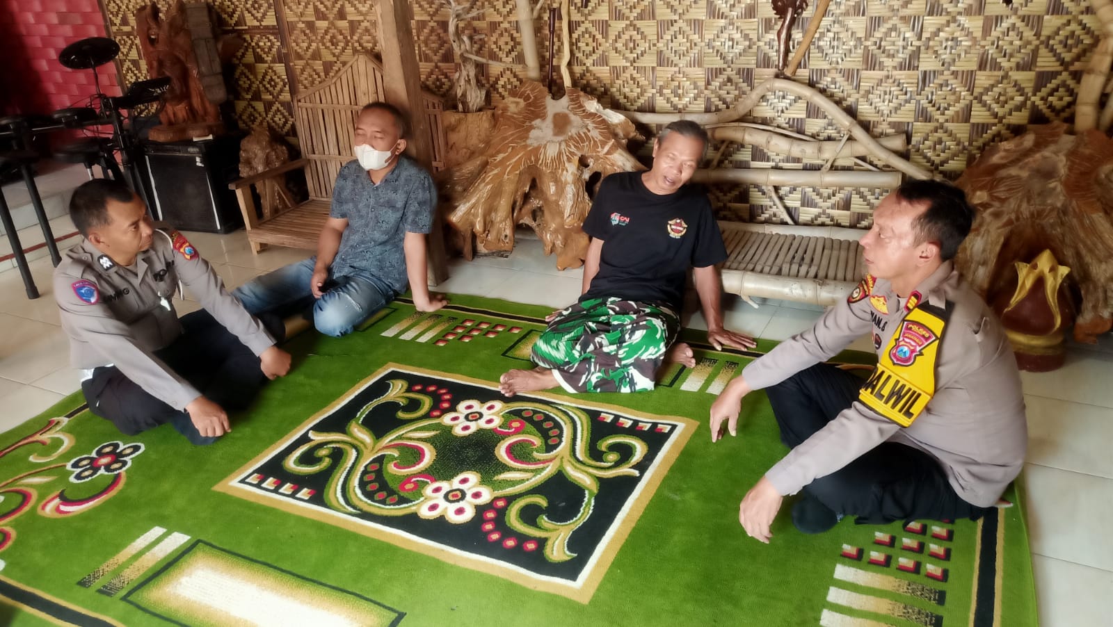 Sangrajawalinews.my.id | Kediri Kabupaten – Kepala Kepolisian Sektor ( Kapolsek ) Gampengrejo AKP Iwan Setyo Budhi didampingi Kanit Lantas Aiptu Untung, Kanit Intelkam Aiptu Darsono, Kanit Provost Aiptu Puguh dan Kasium Aipda Aning menggelar bakti sosial sekaligus silaturahmi dengan tokoh agama di kediaman ( rumah – Red ) Gus Gendeng, Dusun Clelek, Desa Turus, Kecamatan Gampengrejo, Kabupaten Kediri, Jawa Timur.