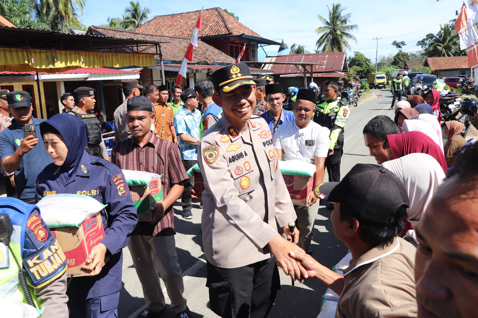 SANGGRAJAWALINEWS.MY.ID | MUSI RAWAS -Ada yang berbeda dari biasanya cara, Kapolres Musi Rawas (Mura), AKBP Agung Adhitya Prananta SH, SIK, MH, dalam memberikan perhatian sekaligus kepedulian kepada warga dengan memberikan Bantuan Sosial (Bansos) sembako dalam rangka menyambut Hari Bhayangkara ke-79, di wilayah hukum Polres Mura.