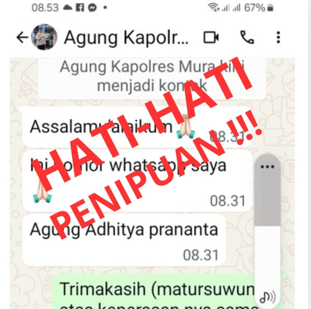 Kapolres mengimbau, kepada masyarakat untuk tidak menanggapi permintaan atau komunikasi apa pun dari akun dan nomor yang mencurigakan, terutama jika mengatasnamakan dirinya untuk kepentingan pribadi, permintaan dana, atau informasi sensitif lainnya.