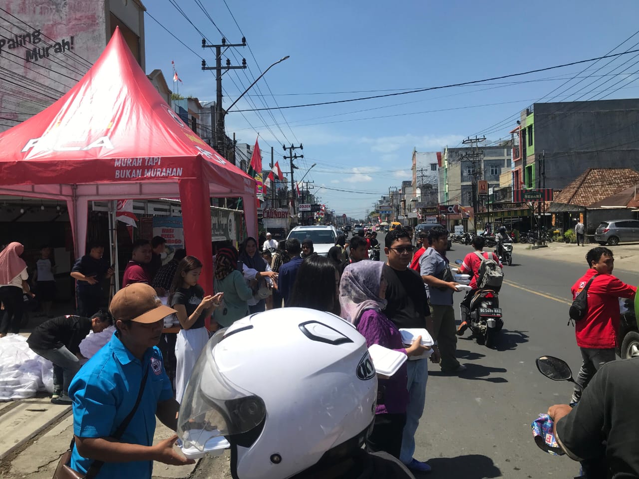 Sangrajawalinews.my.id | Lubuk Linggau – Belokasi Dijalan Jendral Sudirman Kelurahan Taba Cemekeh Kecamatan Linggau Timur 1, Riki Chairil Amri Bersama Keluarga dan Juga Crew Silampari Media Center membagikan 1.100 Nasi Kotak Kepada Warga Dilokasi Dan Para pengrndara yang melitas,