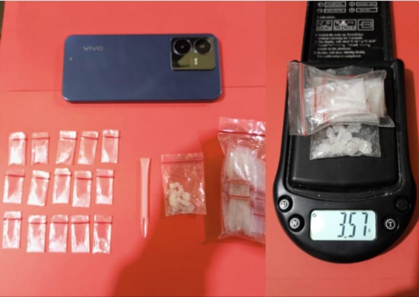 “Saat melakukan penggeledahan ditemukan BB, diduga narkotika jenis sabu seberat bruto 3,57 gram,” kata Kasat Resnarkoba didampingi Kanit Idik 1.