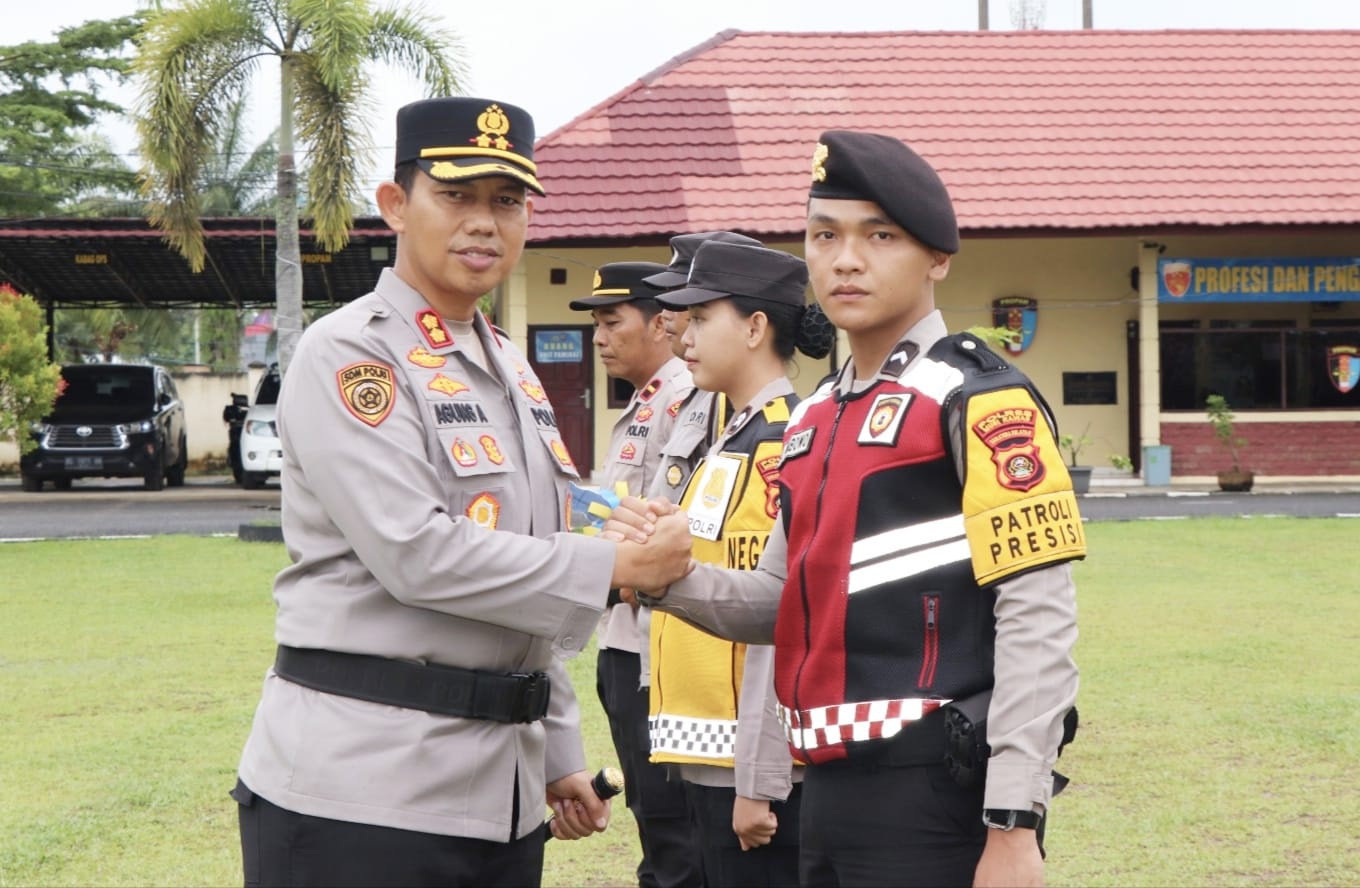 SANGRAJAWALINEWS.MY.ID | MUSI RAWAS-Kapolres Musi Rawas (Mura), AKBP Agung Adhitya Prananta, SH, SIK, MH, memimpin langsung apel Launching Pamapta, Negosiator dan Patroli Presisi Polres Mura, dihalaman apel Mapolres Mura, Rabu (22/10/2025).