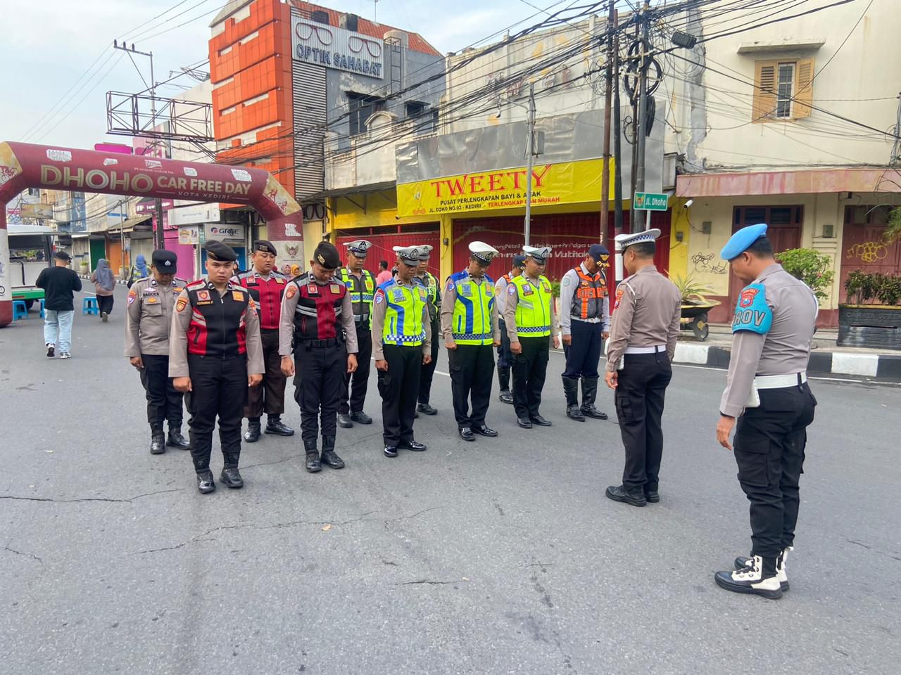 Dalam pelaksanaan tugasnya, personel Satlantas disiagakan untuk melakukan pengaturan arus lalu lintas sekaligus menerapkan rekayasa jalur di sejumlah titik selama kegiatan CFD berlangsung. Langkah ini dilakukan guna memastikan kelancaran mobilitas masyarakat di sekitar lokasi kegiatan serta meminimalisasi potensi kepadatan lalu lintas.