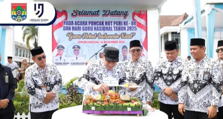 SANGRAJAWALINEWS.MY.ID | LUBUK LINGGAU-Wali Kota Lubuk Linggau H Rachmat Hidayat hadiri upacara peringatan HUT PGRI ke-80 dan Hari Guru Nasional (HGN) tingkat Kota Lubuk Linggau yang dilaksanakan di Lapangan Juara, Halaman Kantor Diskominfo Lubuk Linggau. Selasa (16/12/2025).
