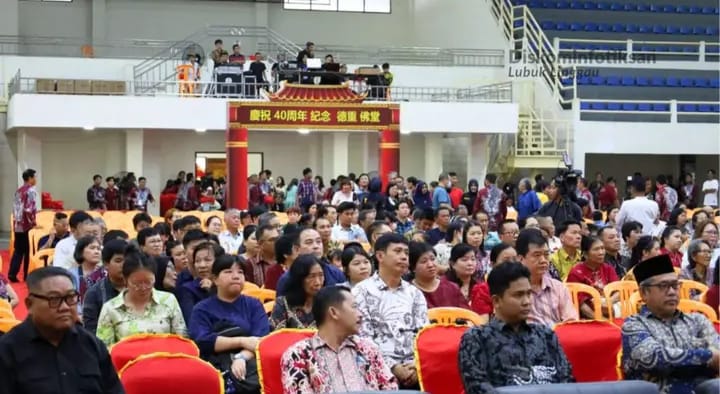 SANGRAJAWALINEWS.MY.ID | LUBUK LINGGAU – Wali Kota Lubuk Linggau, H. Rachmat Hidayat, menghadiri perayaan Anniversary Vihara Aditya Maitreya ke-40 yang digelar di Taman Olahraga Megang, Minggu (28/12/2025).
