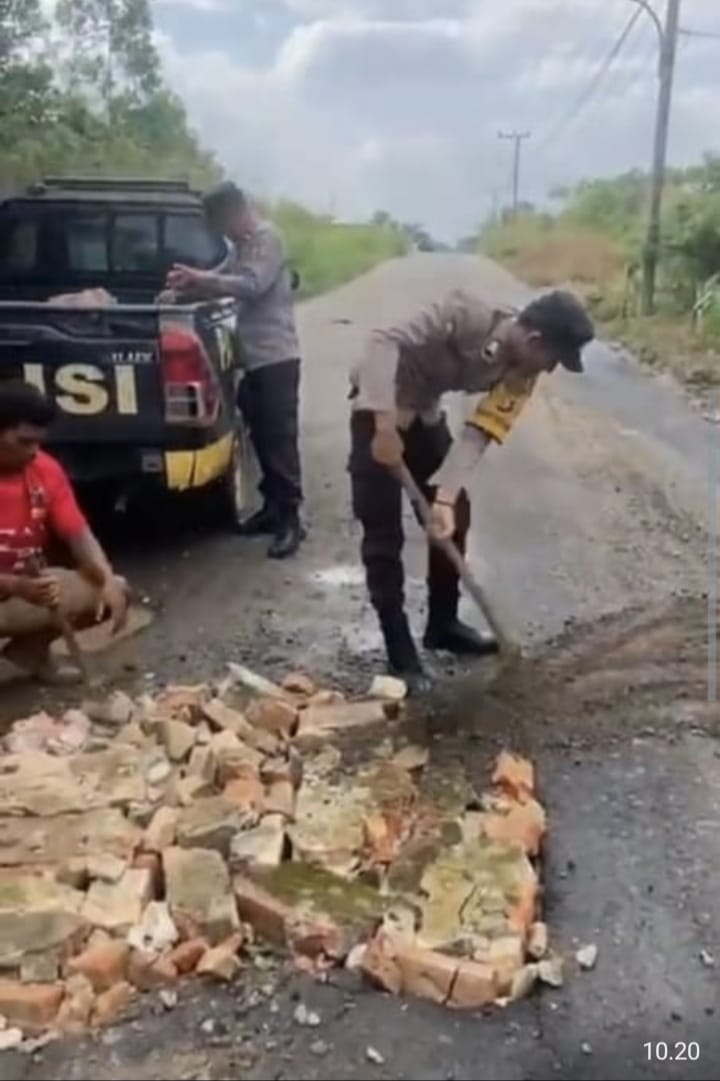 Lebih lanjut, Kapolsek menyampaikan bahwa penimbunan lubang jalan dilakukan menggunakan batu sebanyak satu mobil sebagai langkah sementara guna mengurangi risiko kecelakaan.