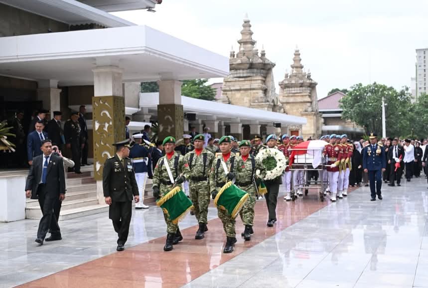 Sekitar pukul 13.30 WIB, jenazah almarhum tiba di TMPNU Kalibata setelah sebelumnya diserahkan pihak keluarga kepada negara di Masjid Sunda Kelapa, Jakarta. Presiden Prabowo mengiringi dari belakang peti jenazah. Dengan diselimuti bendera Merah Putih, peti jenazah tersebut diangkat oleh anggota TNI menuju tempat peristirahatan terakhir.
